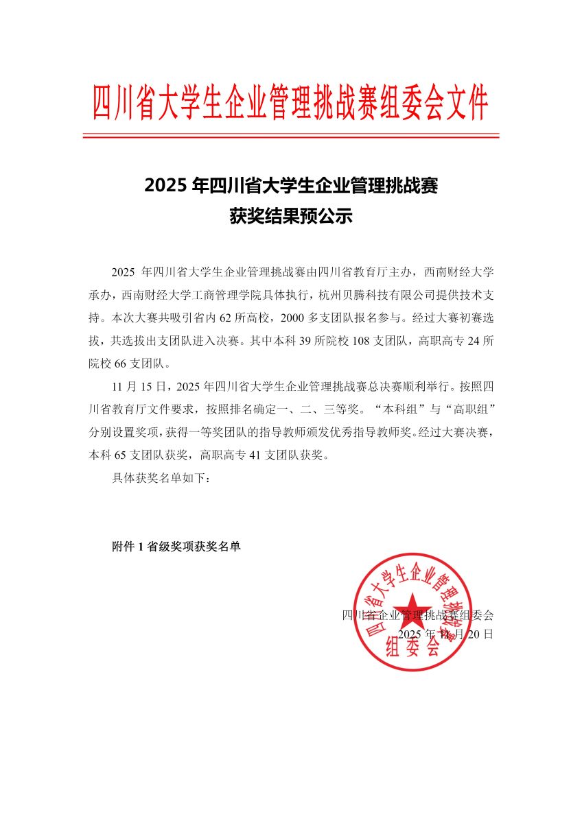 2025 年四川省大学生企业管理挑战赛获奖结果预公示