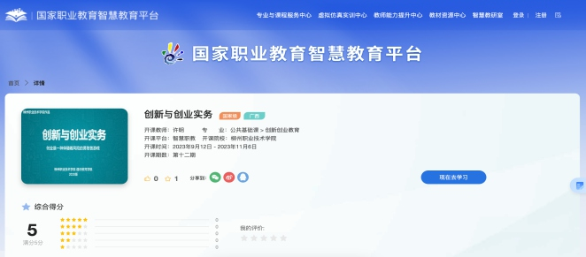 柳州职业技术学院《创新与创业实务》课程凭借突出的教学成效与鲜明的职教特色,成功被认定为 2022 年职业教育国家在线精品课程。课程聚焦职业教育创新创业人才培养目标,系统设置现代商帮企业创新创业精神、产品技术创新、商业模式设计和资源整合运营等核心教学模块,助力学员系统掌握相关知识,初步具备创新创业管理所需的知识、技能和综合素养。为深化理论与实践的融合,课程的实践教学环节全程使用贝腾科技的创业总动员实训平台为支撑,为学生提供了高效的模拟实践载体。
