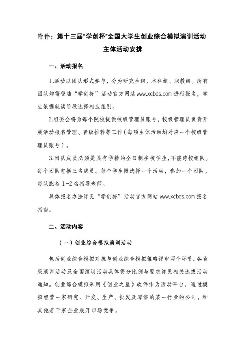 关于举办第十三届“学创杯’全国大学生创业综合模拟演训活动的通知