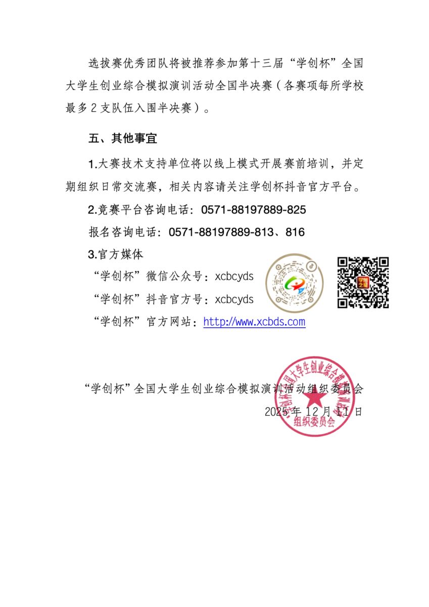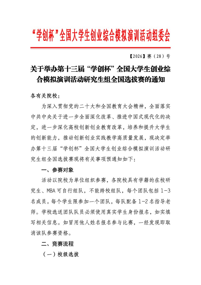 关于举办第十三届“学创杯”全国大学生创业综合模拟演训活动研究生组全国选拔赛的通知