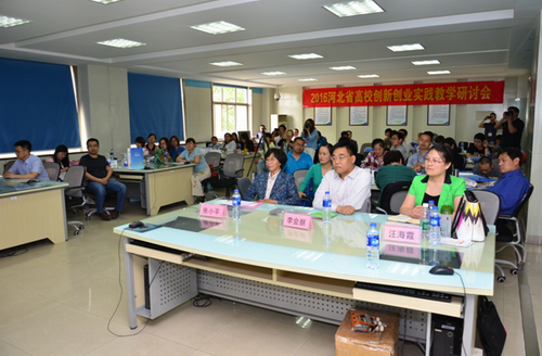 值得一提的是河北省创新创业实践教学研讨会也随之同期举行。与会老师人数达70多人,会议还邀请了河北地质大学副校长张小平,并为会议致开幕词。同时,会议还特别邀请了河北省人力资源和社会保障厅职业介绍处处长李会朋处长,为大家介绍河北省大学生创业扶持的相关政策。会议嘉宾还包括河北地质大学实验实践教学中心副主任杨武歧,河北农业大学商学院创新创业专职教师陈哲思、杭州贝腾北大区销售总监汪海霞。会议上大家主要探讨了目前高校创新创业教育的现状,“互联网+”背景下创新创业的教学模式以及如何开展创新创业实践教学等相关主题。会议提高了教师间的学术交流以及创业教育信息的相互沟通,实现了增进校企合作这一目标,各与会老师也纷纷表示自己对于学校创新创业教育有了更深的认知。