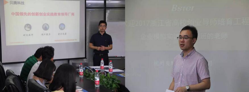 7月1日至7月5日,由浙江省教育厅举办的浙江省创业导师培育工程——企业模拟实训师培训班(三期)在浙江科技学院举行,来自全省的60多名教师参加培训。贝腾创业研究院院长姚碧锋为老师们做了创新创业实践教学专题培训。