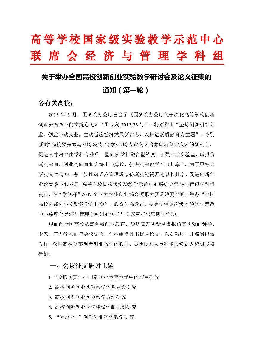 关于举办全国高校创新创业实验教学研讨会及论文征集的通知(第一轮)