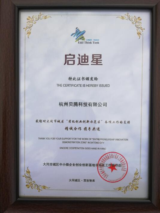 会议对“城区双创智库”——杭州贝腾科技有限公司进行授牌。