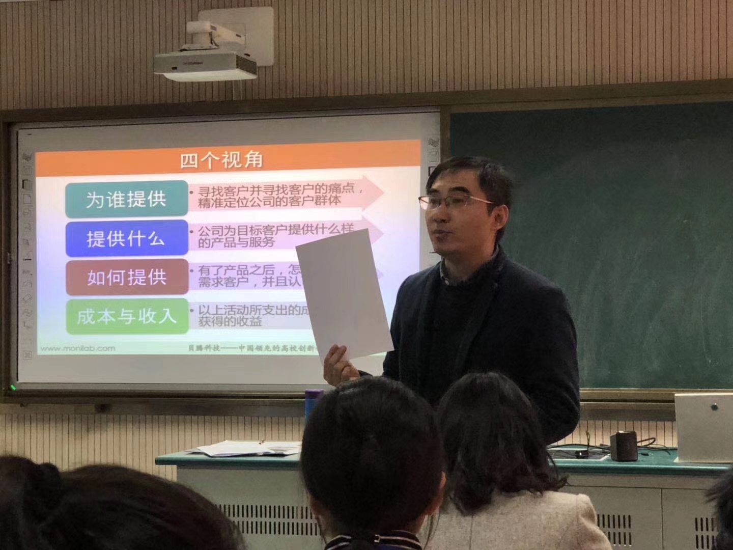 贝腾科技作为深耕于国内创新创业教育领域十多年的先进厂商,应邀参与到了本次的训练营活动中。贝腾科技市场总监肖竟成先生,作为创业导师负责人,带领导师团队为创业实践组别的9个团队提供了为期四天的专业指导。培训前期,肖老师先给全体参赛团队开展了一天的商业模型设计课程,解析了创业项目商业模式分析的方法,并请各团队开展对自身项目的诊断分析。肖老师还针对每个团队正在操作的项目,进行逐个穿透分析,为各队带去了全面客观的创业项目分析,帮助创业团队理清发展思路,探讨破解市场难题。