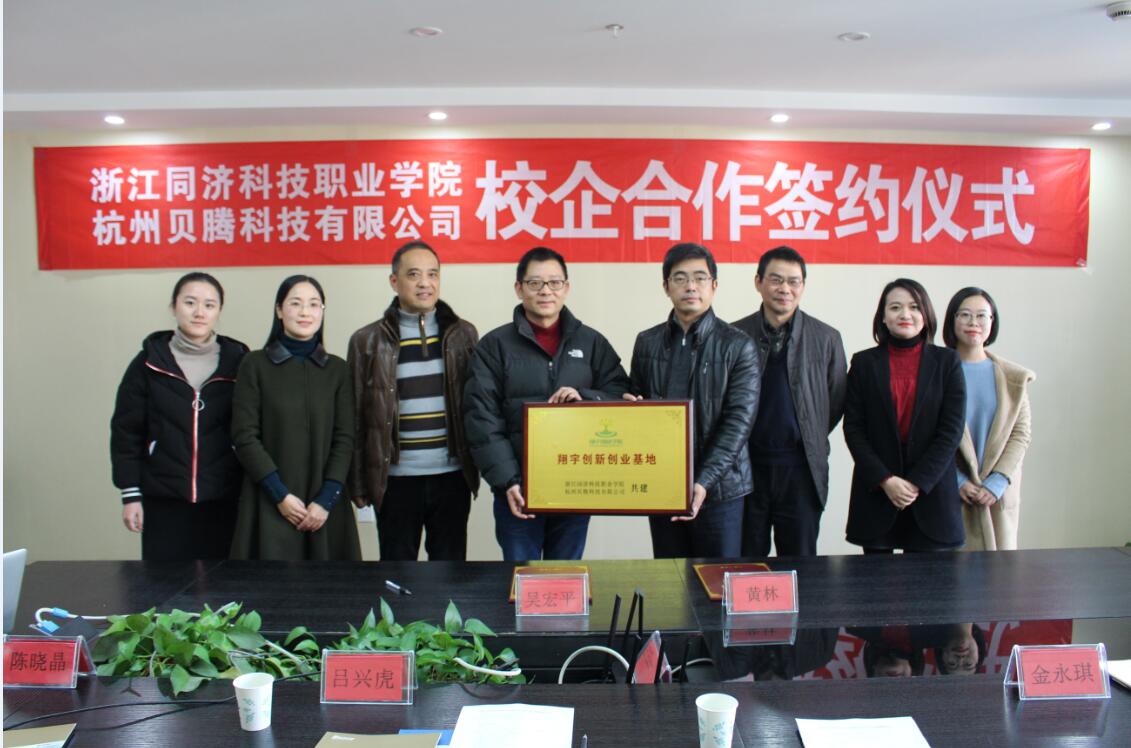 12月19日下午,浙江同济科技职业学院与杭州贝腾科技有限公司校企合作暨揭牌仪式在我司顺利举行。浙江同济科技职业学院副院长吴宏平、招就处处长金永琪、发展与合作处副处长吕兴虎、翔宇创业学院教研室主任徐宜宜、招就处干事陈晓晶莅临公司。杭州贝腾科技有限公司董事长黄林、市场总监肖竟成、华东区销售总监钱玉丹、研发部经理李肖,以及浙江省销售经理郭淑倩参加了本次活动。