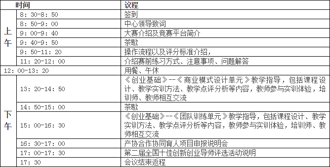 为全面贯彻落实《国务院办公厅关于深化高等学校创新创业教育改革的实施意见》(国办发〔2015〕36号)文件精神,探讨创新型创业教育课程体系和实践教学形式,探寻创业教育的开展方式、方法,推动高校创新创业教育的深入开展,加强各高校间创业课程教学经验的交流,江西财经大学和杭州贝腾科技有限公司将于2018年3月31日在江西财经大学联合举办为期一天的《创业基础实践》课程体验会暨2018“学创杯”全国大学生创业综合模拟大赛赛前师资培训会。