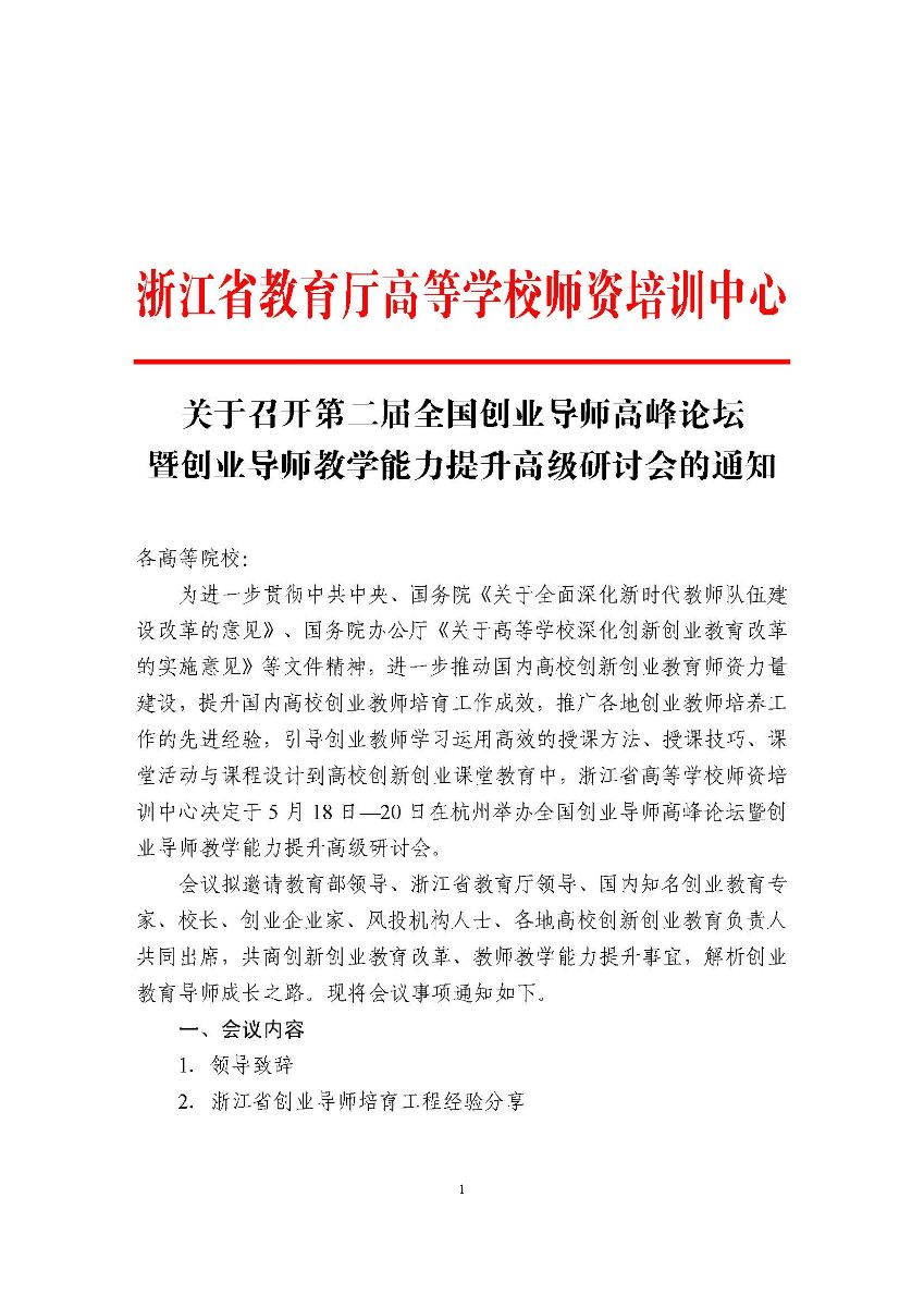 关于召开第二届全国创业导师高峰论坛暨创业导师教学能力提升高级研讨会的通知