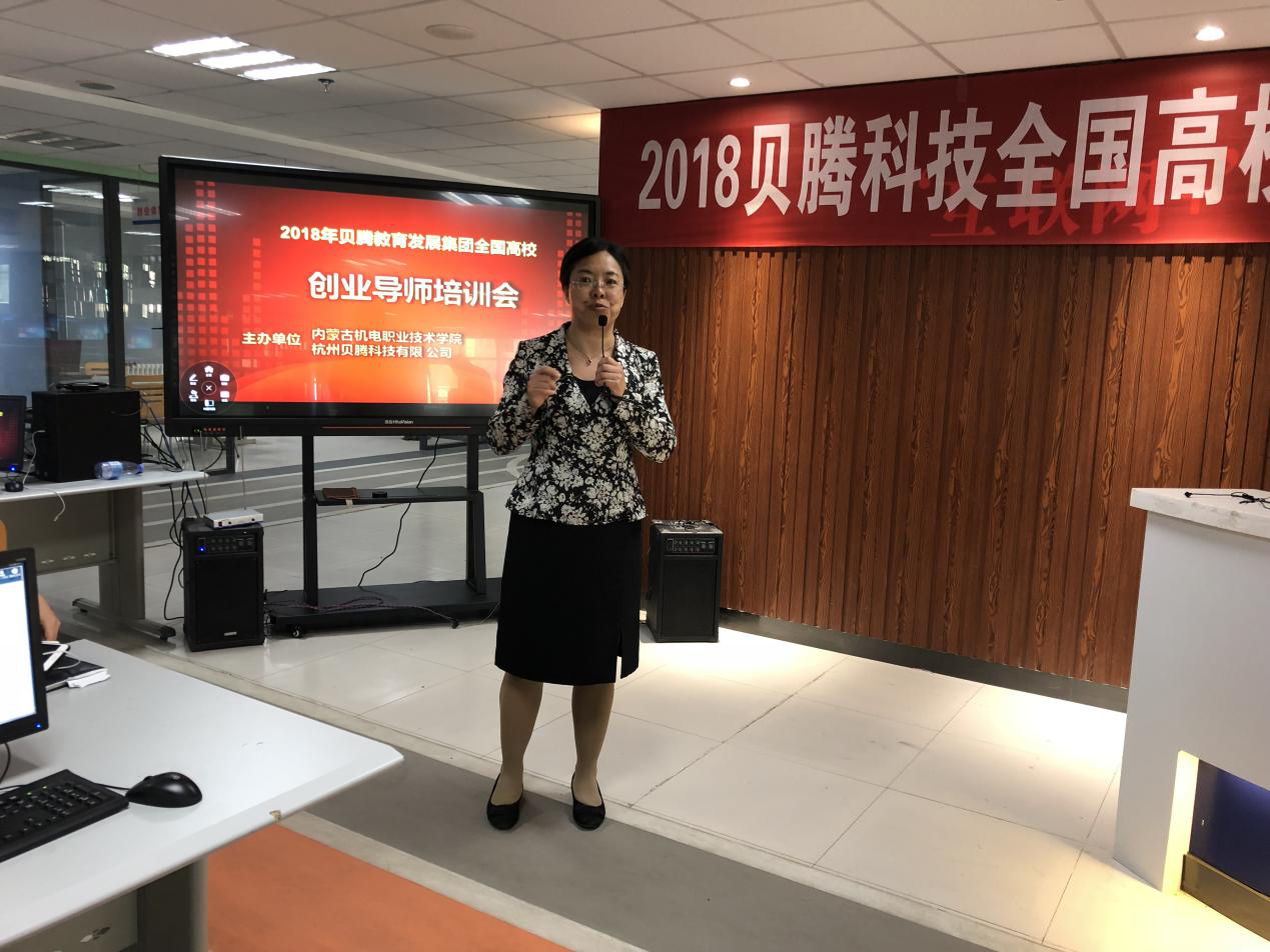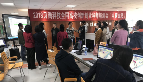 上午的会议主要针对内蒙古机电职业技术学院本校老师开展。贝腾创业研究院导师兼销售总监汪海霞作为主讲导师,为与会老师开展了《创业之星》的教学示范与培训。其中,《创业之星》软件平台作为国内先进的商业模拟实战平台,在全国各级创新创业类赛事与院校双创课程开展过程中都扮演了重要的角色。内蒙古机电自去年与贝腾科技开展校企合作以来,通过引进《创业总动员》等软件,开展了一系列实践类双创课程,成为学校双创教育体系中最重要的核心课程。
