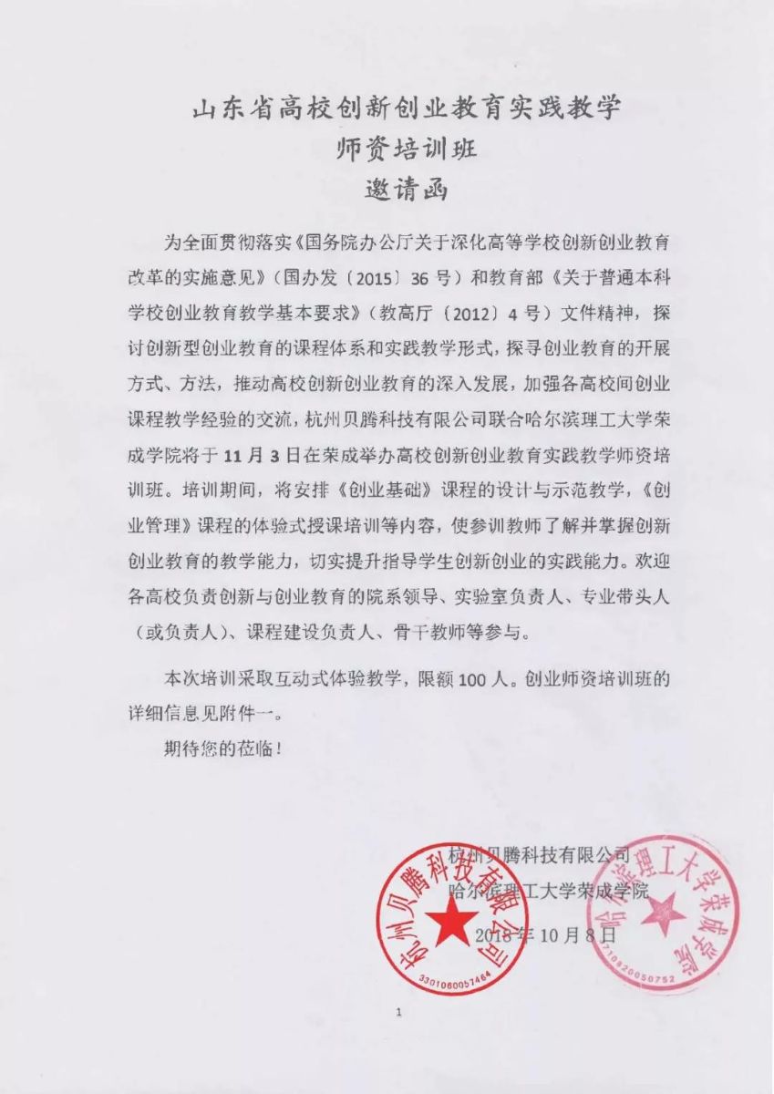 山东省高校创新创业教育实践教学师资培训班邀请函