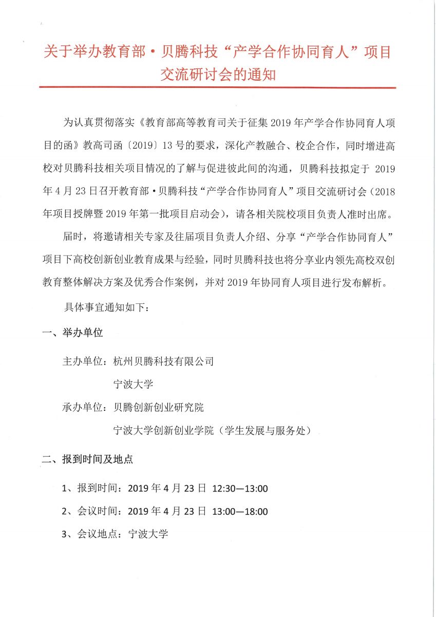 关于举办教育部·贝腾科技“产学合作协同育人”项目交流研讨会的通知