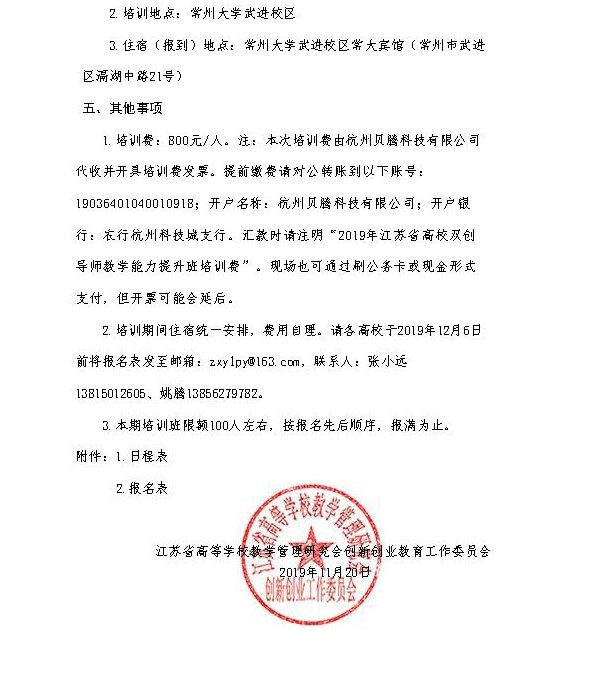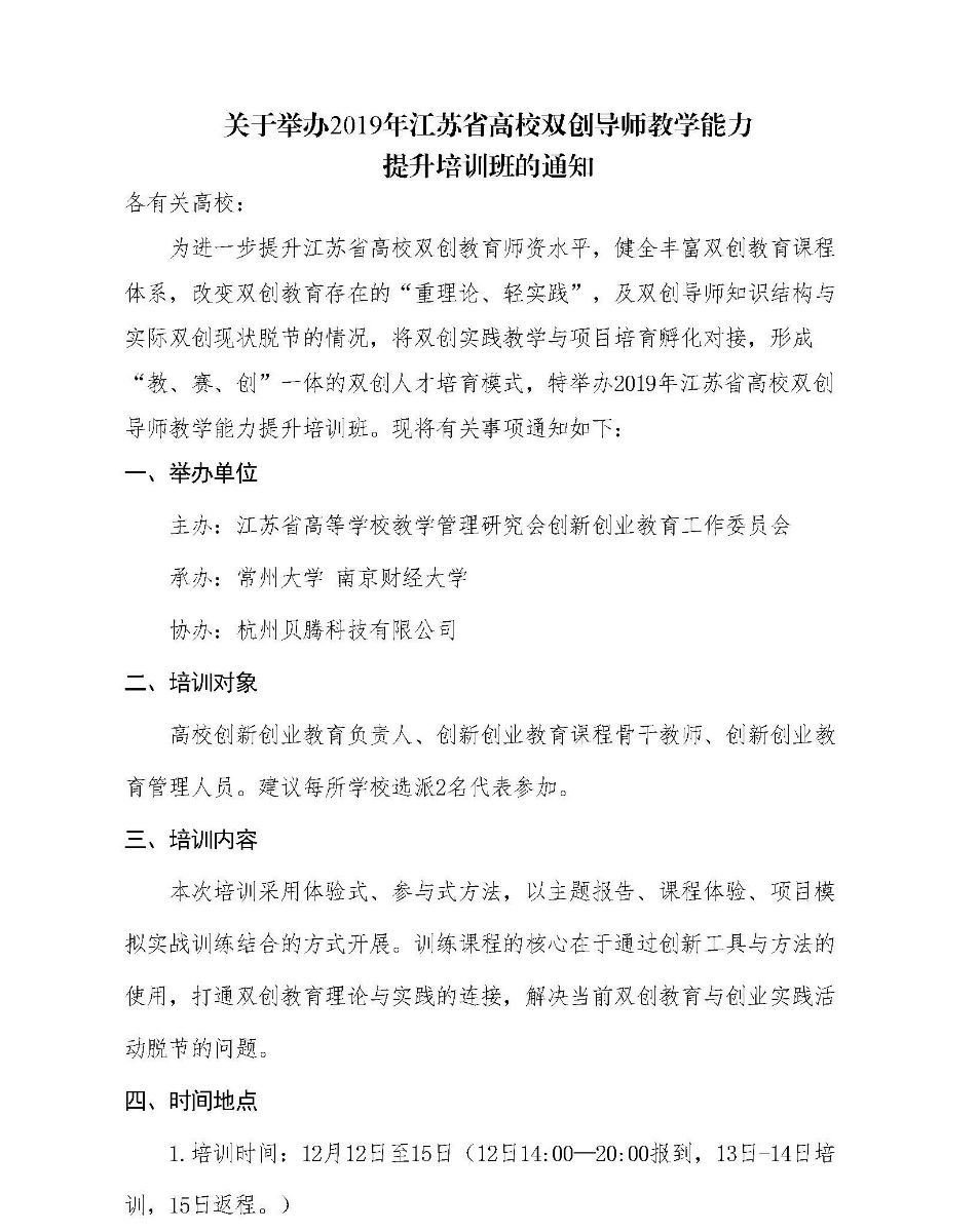 关于举办2019年江苏省高校双创导师教学能力提升培训班的通知