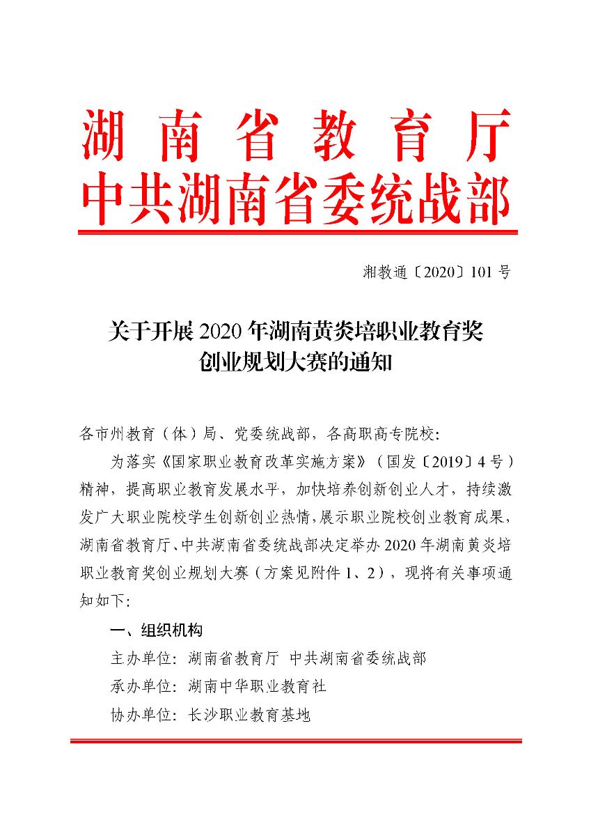 附件:《关于开展2020年湖南黄炎培职业教育奖 创业规划大赛的通知(湘教通〔2020〕101号)》