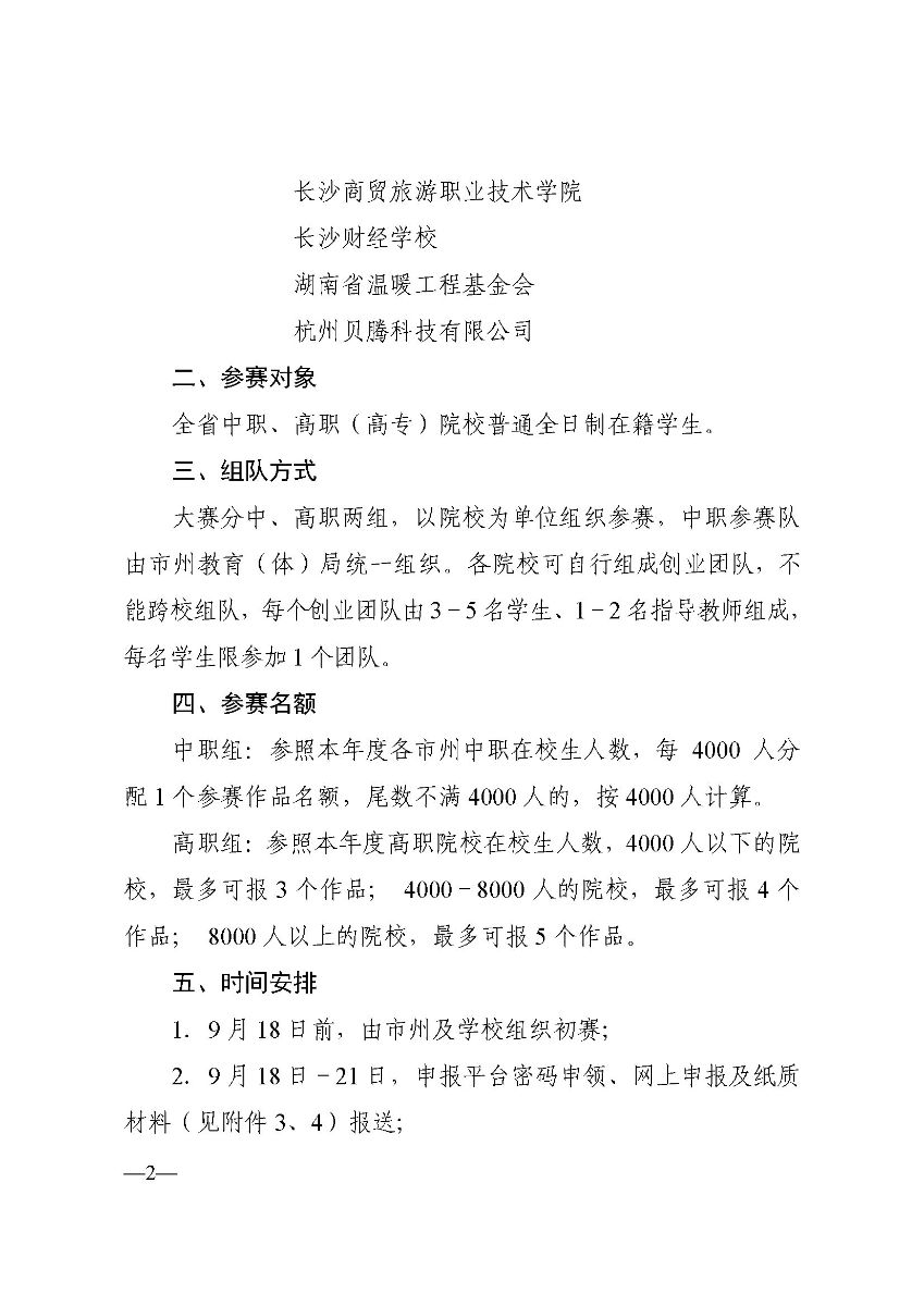 ② 大赛分中、高职两组,以院校为单位组织参赛,各院校可自行组成创业团队,不能跨校组队;