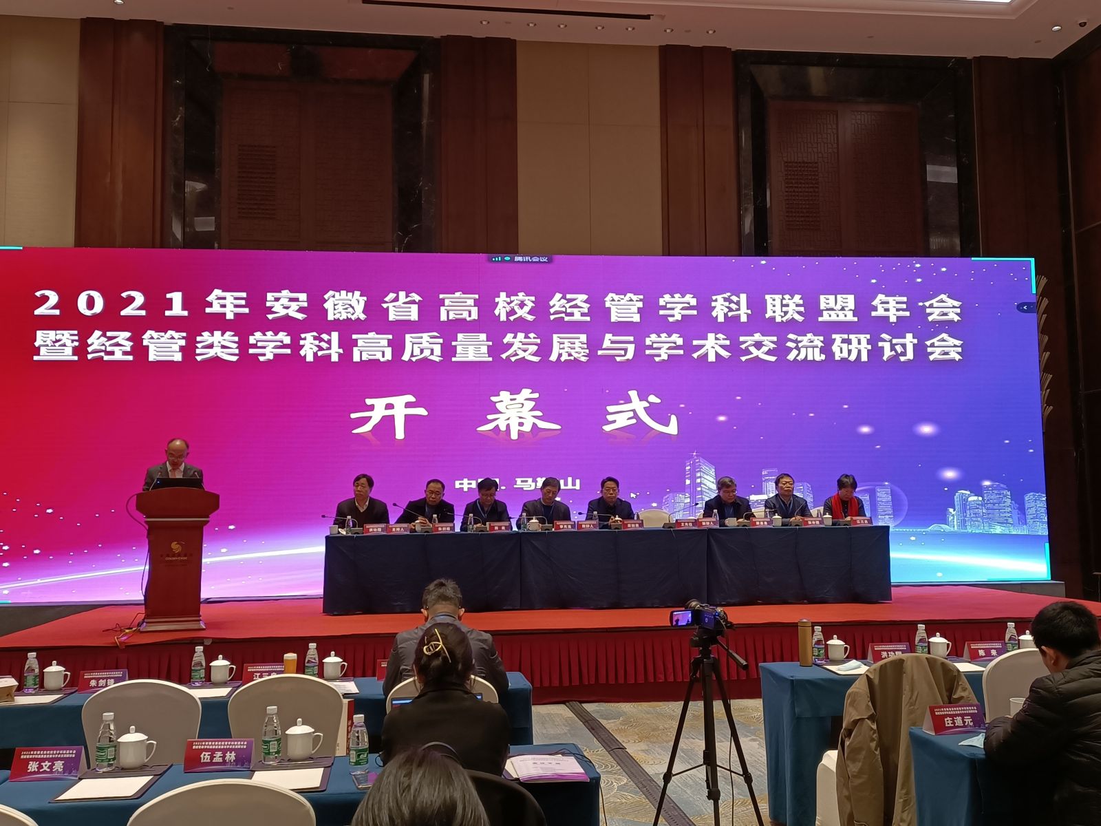 2021年12月4日,由安徽省高校经管学科联盟主办,安徽工业大学商学院、安徽创新驱动发展研究院、安徽创新驱动与产业转型升级发展研究中心、安徽工业大学公司治理与运营研究中心承办,杭州贝腾科技有限公司协办的2021年安徽省高校经管学科联盟年会暨经管类学科高质量发展与学术交流研讨会在马鞍山召开。会议采取线下和线上相结合的形式举行,来自全省20多所高校的经管类院系负责人、教学科研骨干参加线下会议。开幕式由安徽工业大学商学院党委书记洪功翔教授主持。杭州贝腾科技有限公司市场总监肖竟成、华北大区总监马姗姗、安徽省区经理卫亮出席开幕式。