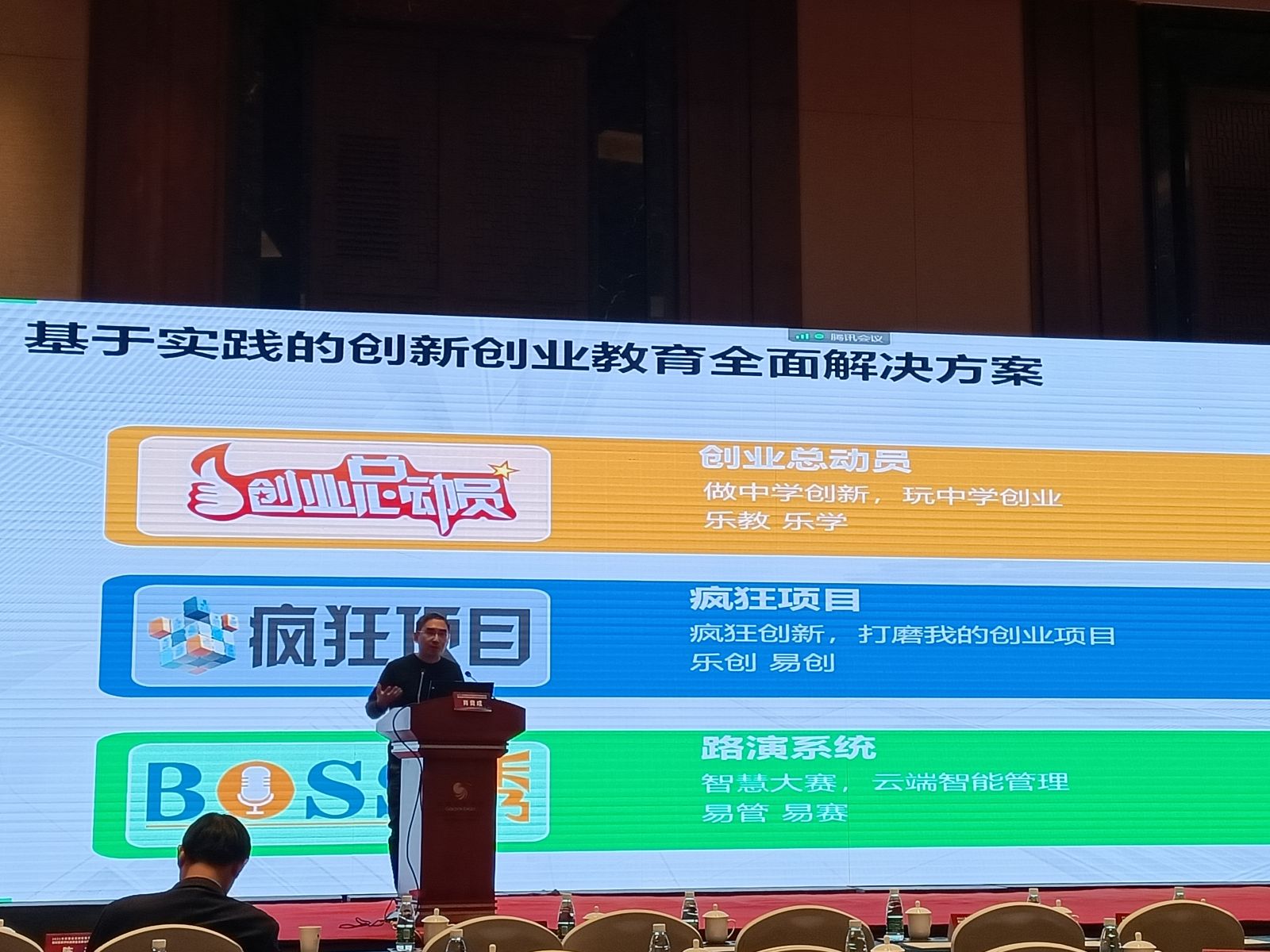 杭州贝腾科技有限公司市场总监、贝腾创业研究院首席专家肖竟成受邀在分论坛上做主题报告。肖老师主要围绕“教赛创合一”的创业教育实践分享、“做中学”创业的本质认知等内容展开。他介绍:贝腾除了是一家软件公司,同时还拥有专业的团队研究课程建设,目前与国内多所高校有着密切合作,打造了精品课程《创业管理》,参与的项目《虚实融合的创新创业教学模式改革与实践》获得了教学成果奖二等奖,并且成功开设了《企业管理》、《电子商务创业实践》等实验课程。