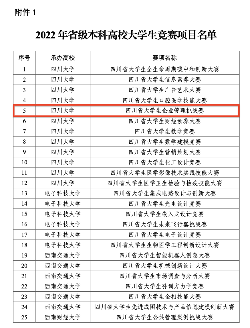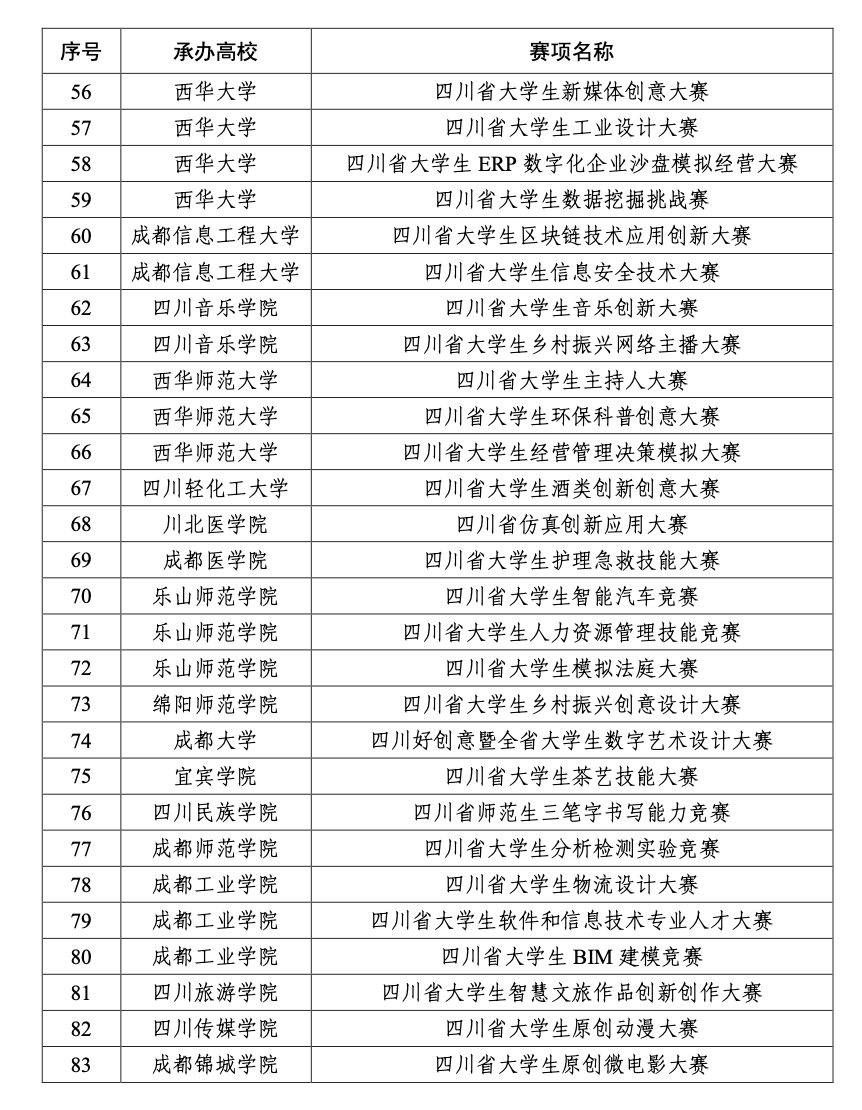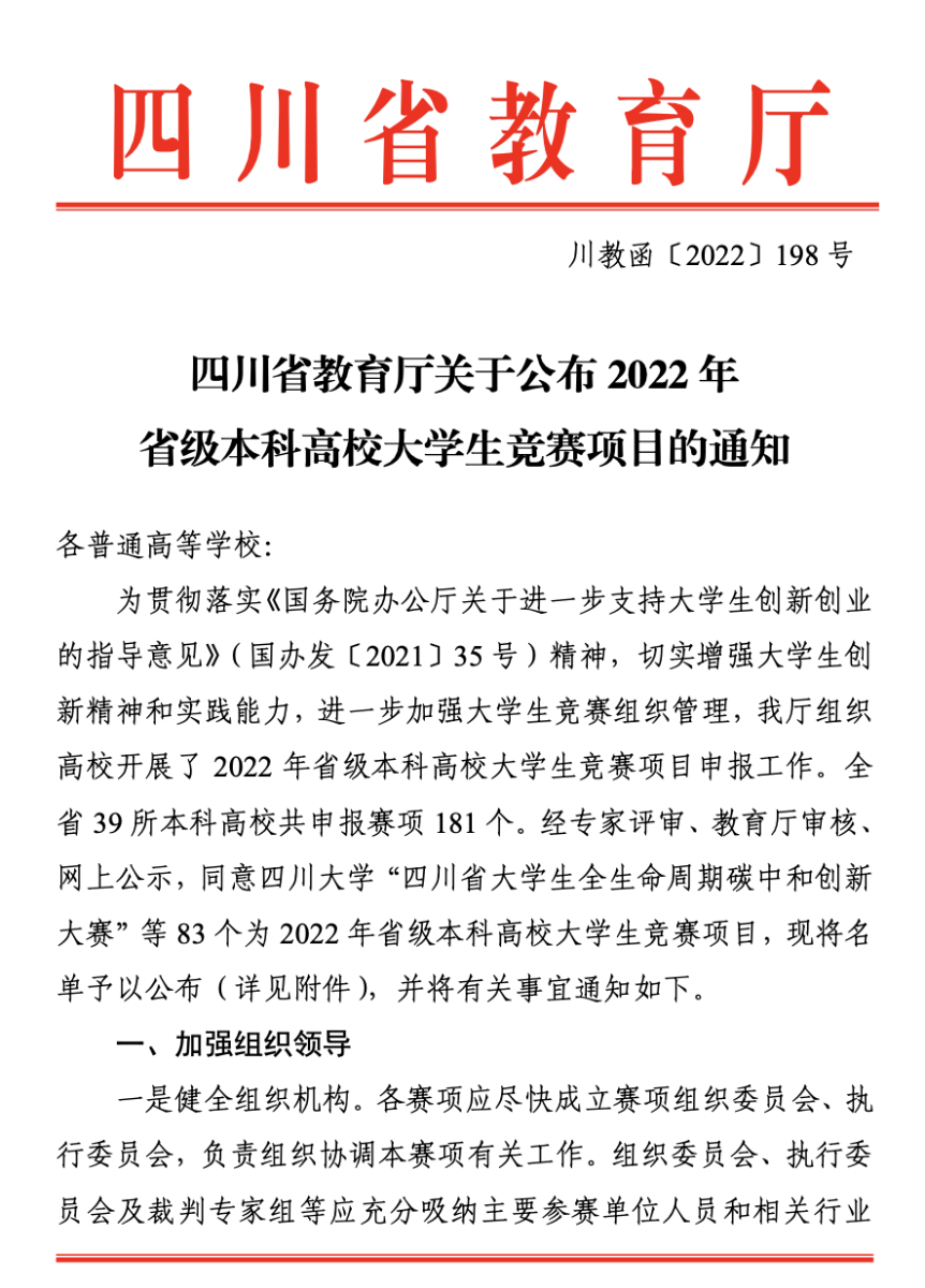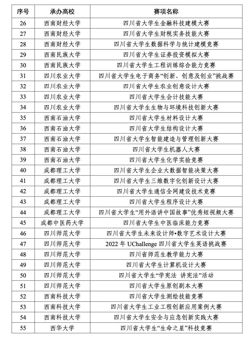 四川省教育厅关于公布2022年省级本科高校大学生竞赛项目的通知