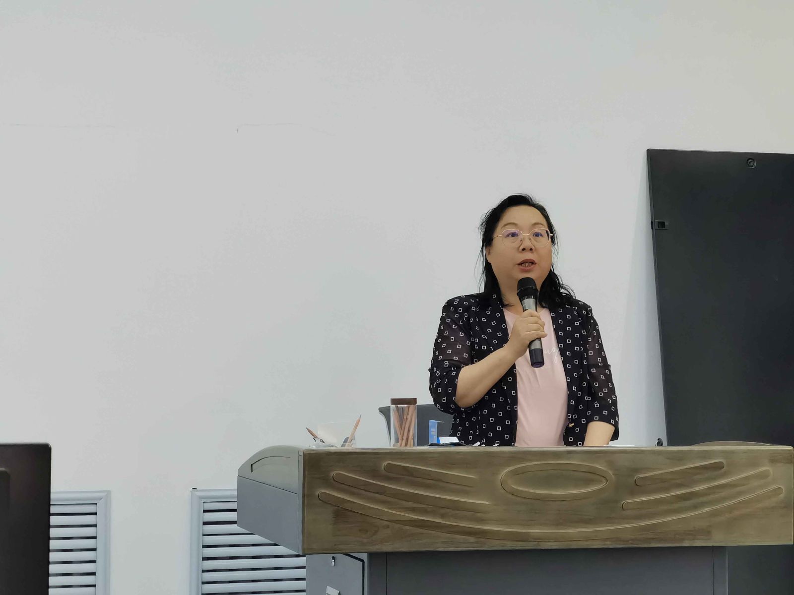 会议由吉林工商学院工商管理实训中心主任陈立林主持。首先,由吉林工商学院实验实训管理中心副主任李敏致辞。随后,由研究院委员刘庆就数智双创智慧学习工场——规划设计方案作了介绍,并且对"教赛创”融合课程示范进行了分享,带领参会教师体验了双创实践课程核心模块。