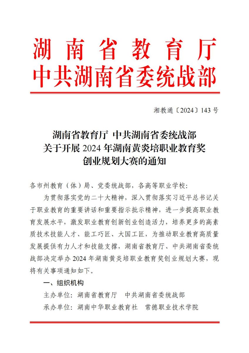 关于开展2024年湖南黄炎培职业教育奖创业规划大赛的通知
