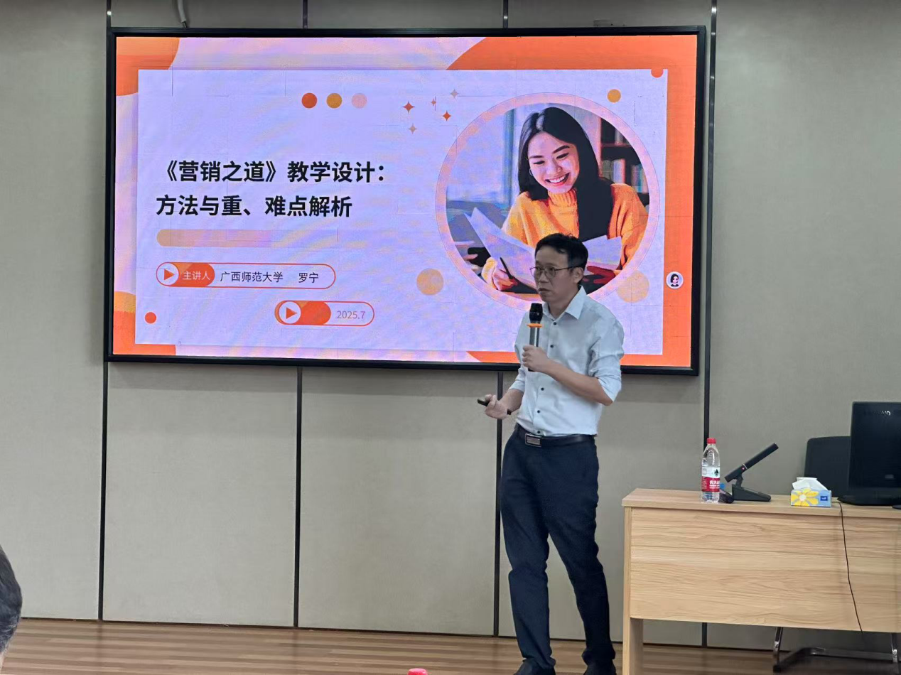 广西师范大学罗宁老师作了题为《赛教结合下的营销模拟实训课程设计与实施》的报告,以《营销之道》平台为例,进行了教学设计分享、数字营销大赛指导经验分享。