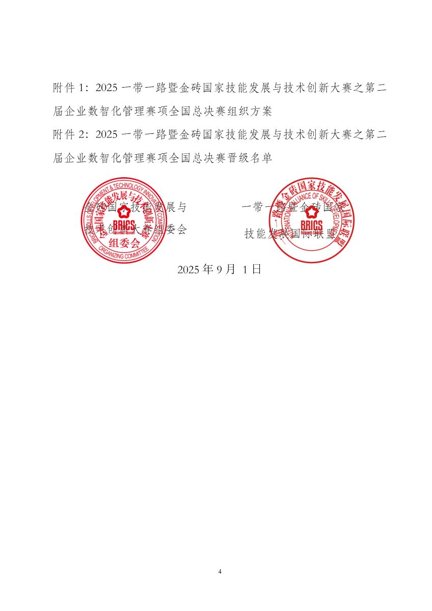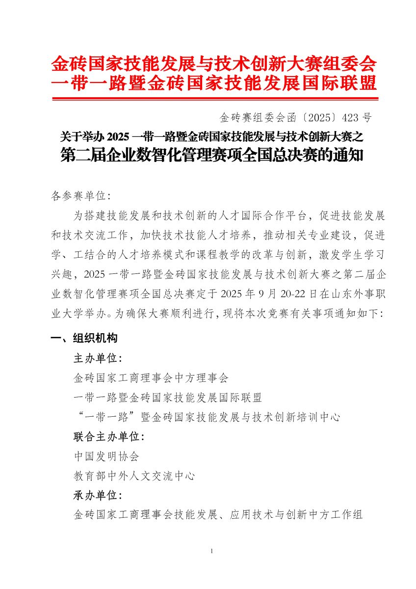 关于举办2025一带一路暨金砖国家技能发展与技术创新大赛之第二届企业数智化管理赛项全国总决赛的通知