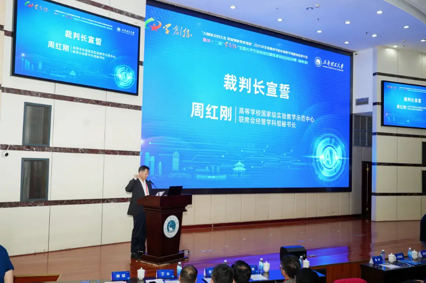 最后,裁判长周红刚代表全体裁判员进行宣誓,承诺坚守职业操守、履行裁判本职工作,将秉持严谨态度,依照专业标准作出公正判罚,为所有参赛选手保驾护航。参赛学生代表发言,表达了将严格遵守大赛规则、服从裁判判定,尊重对手与赛场,凭借真实能力与诚恳态度参与赛事,共同守护公平、公正、公开的竞赛环境。