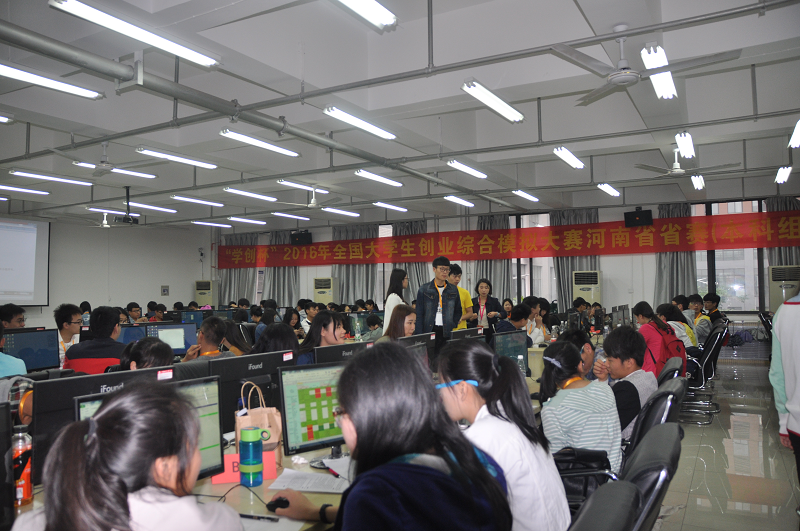 在研讨会的同时,“学创杯”2016年全国大学生创业综合模拟大赛河南省省赛也在紧张而激烈的进行。此项活动由河南科技大学承办,省内42所高校的102支(本科75支,专科27支)参赛队伍、300余名选手参加。经过六个小时紧张而激烈的竞争,比赛于下午3时准时结束。