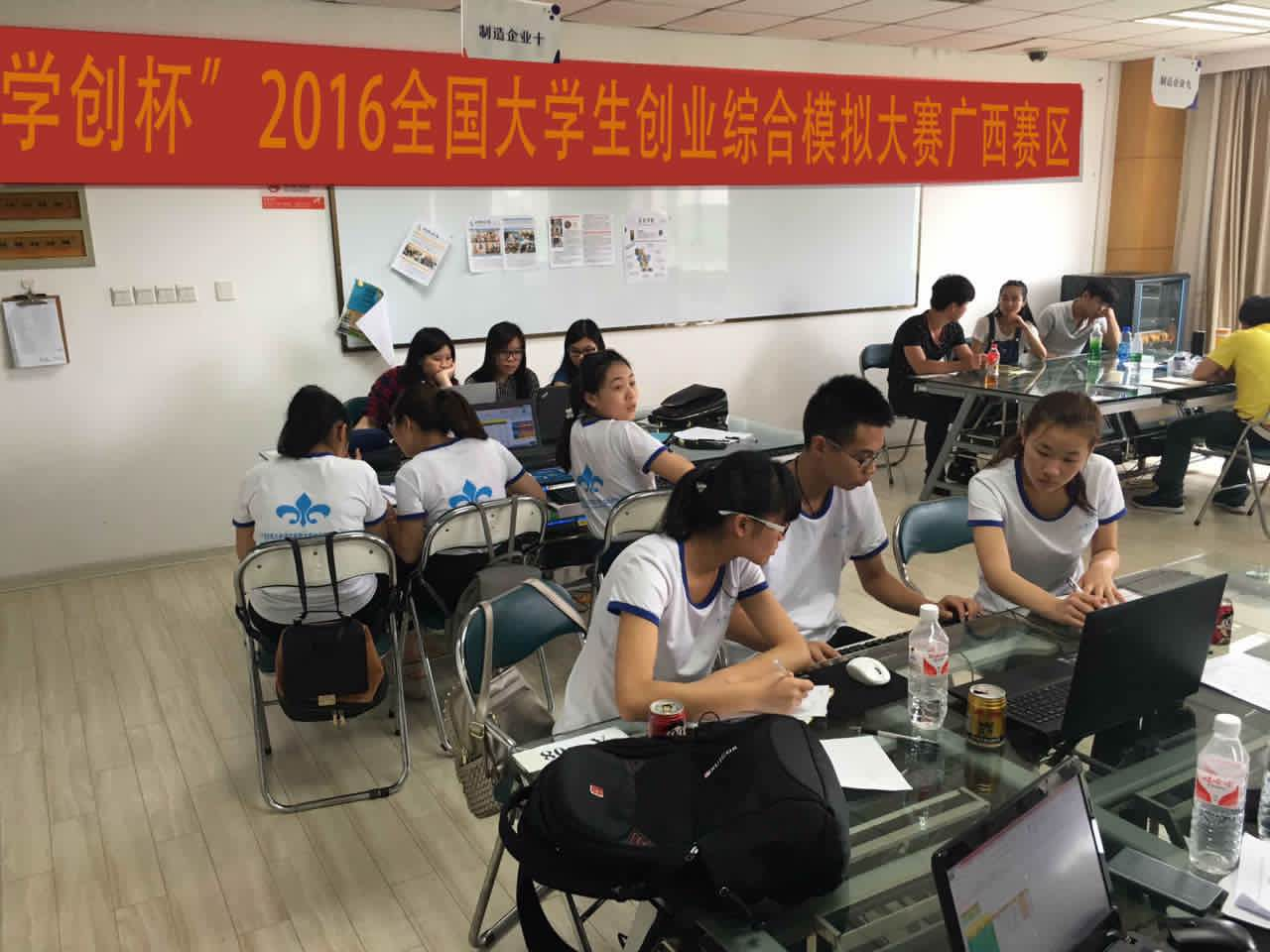 5月20日,由高等学校国家级实验教学示范中心联席会经济与管理学科组主办,杭州贝腾科技有限公司提供技术支持的2016“学创杯”全国大学生创业综合模拟大赛广西区赛(本科组)在广西大学举行。来自全区20多所高校近五十支团队展开了激烈的经营竞争。