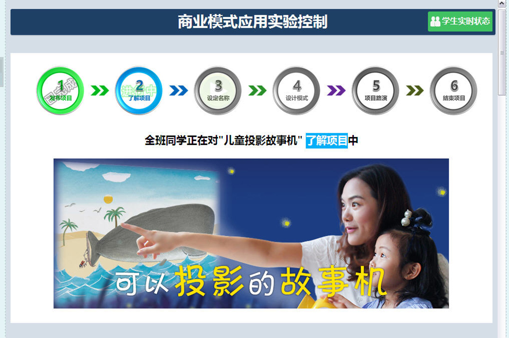 5、在项目路演环节,系统提供一套虚拟的路演系统,教师可以选择某位学员进行路演,其余学员屏幕则显示该同学的商业模式设计。软件同时提供一套虚拟的投融资系统,学员可以根据路演者商业模式设计及模拟路演情况,进行模拟投融资。通过这样的路演系统、投融资系统,实现学员商业模式的项目路演、投融资。同时教师、学员之间可以相互交流。