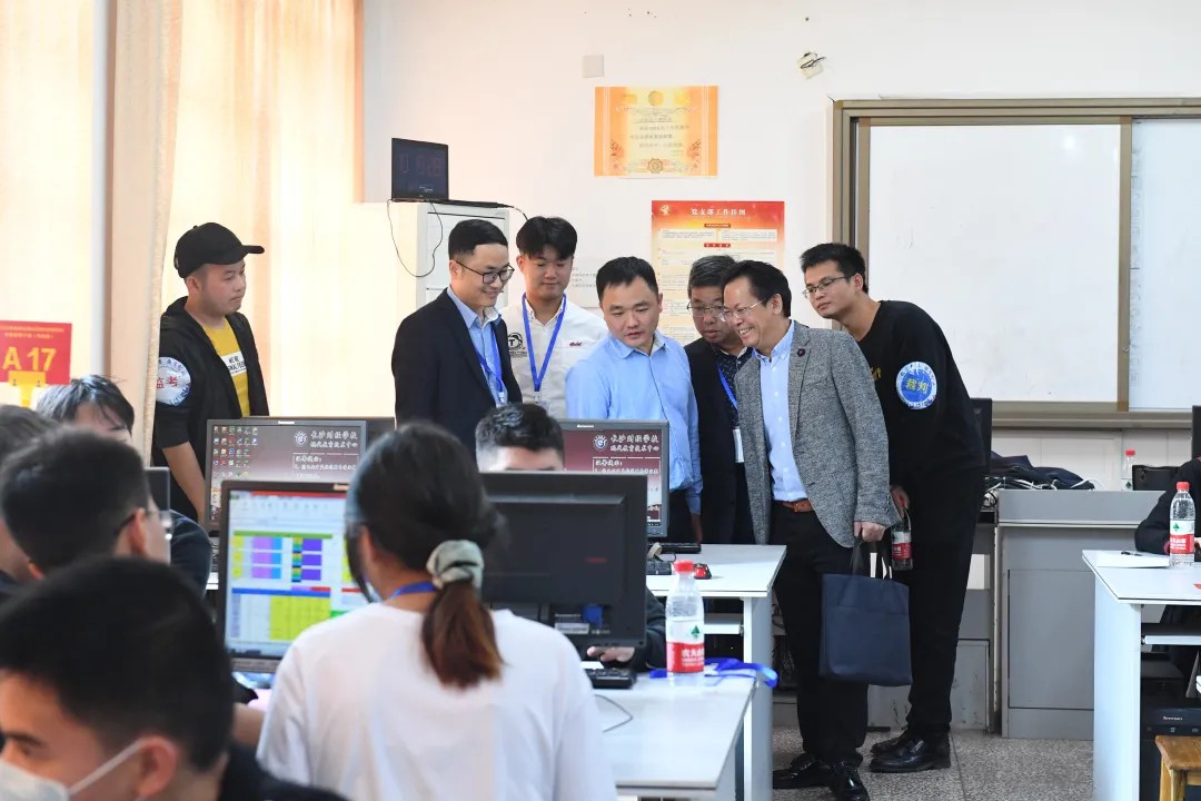 10月11日上午,中职组和高职组专项赛同时展开,比赛期间,湖南中华职业教育社秘书长冯立兵、湖南省教育厅职成教育处副调研员王宇、长沙财经学校副校长冯庆珍一行前往比赛现场看望参赛学生,并向工作人员详细询问与了解专项赛赛事平台《创业之星》。