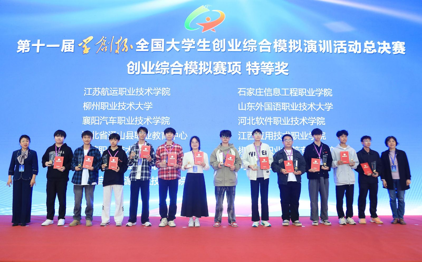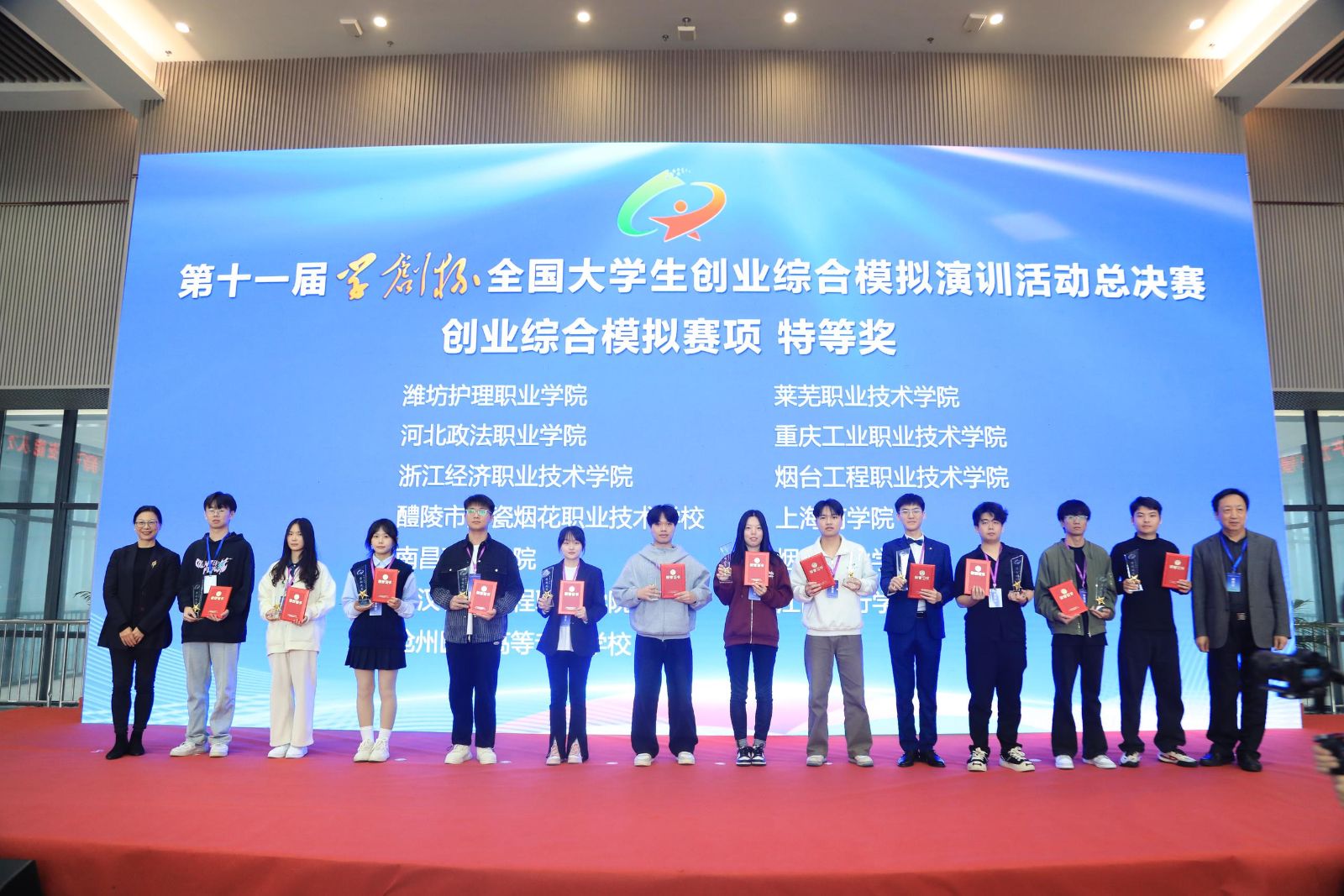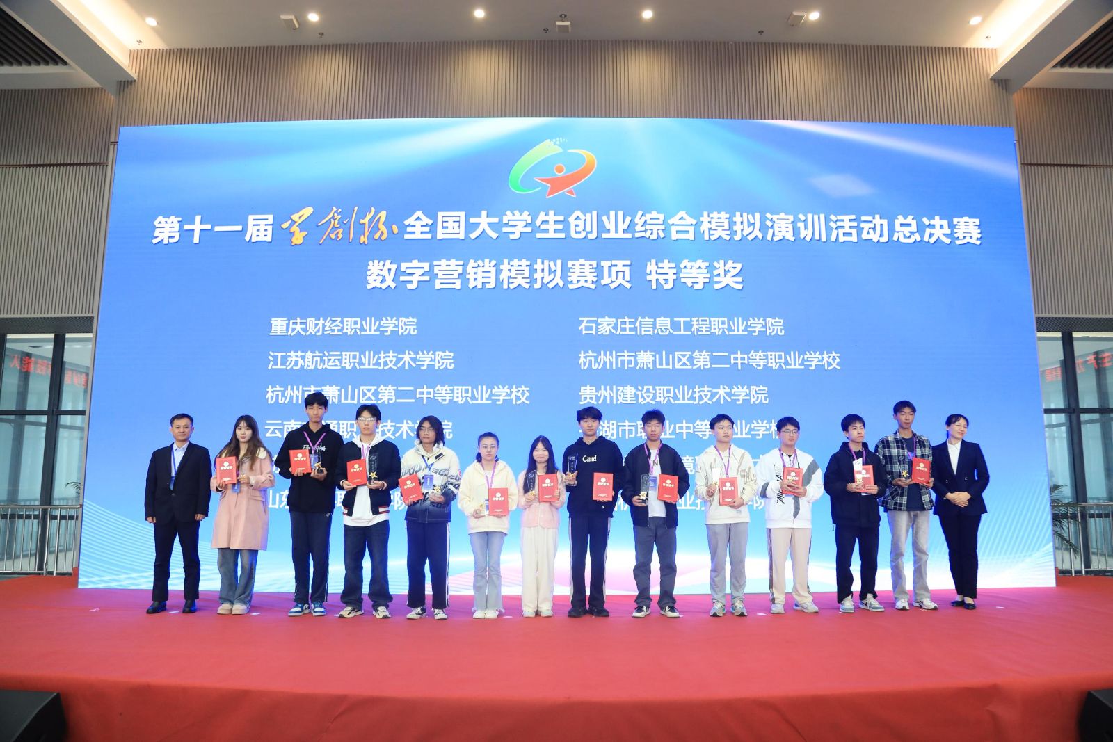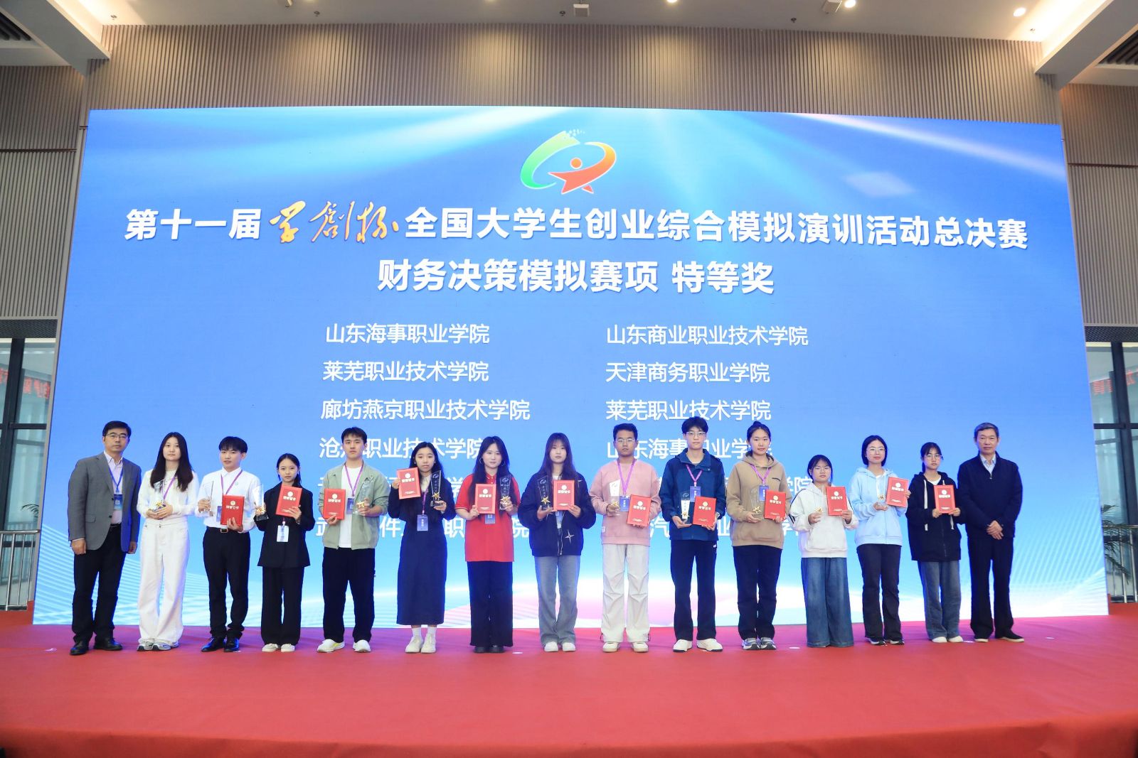 经过多轮激烈的比拼,创业综合模拟赛项中,柳州职业技术大学等24所学校的26支团队获得特等奖,泰山职业技术学院等47所学校的53支团队获得一等奖;数字营销模拟赛项中,重庆财经学院等11所学校的12支团队获得特等奖,河北政法职业学院等26所学校的28支团队获得一等奖;财务决策模拟赛项中,山东海事职业学院等10所学校的12支团队获得特等奖,烟台职业学院等24所学校的26支团队获得一等奖。