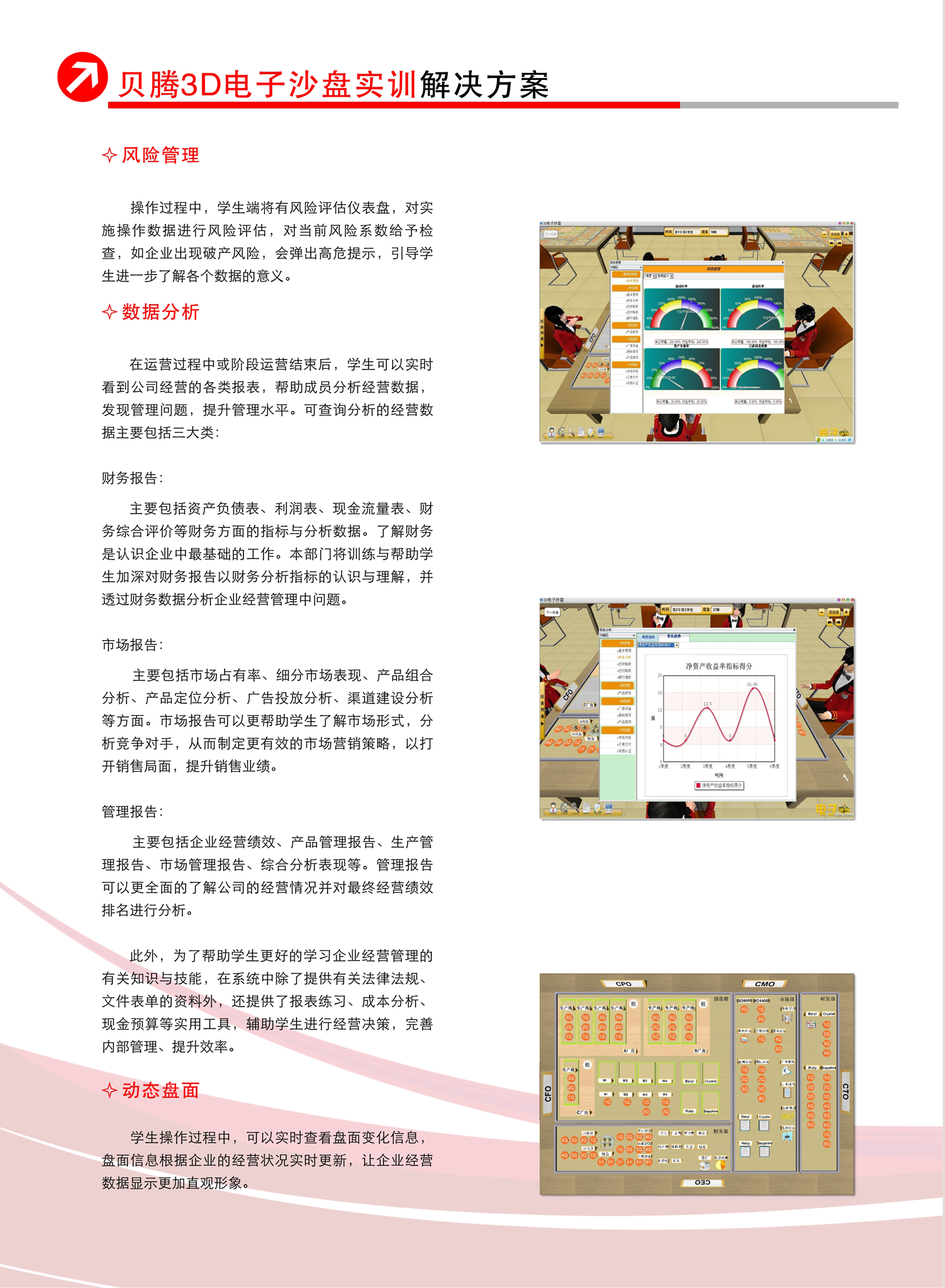 (9)数据分析:在运营过程中或阶段运营结束后,学生可以实时看到公司经营的各类报表,帮助成员分析经营数据,发现管理问题,提升管理水平。